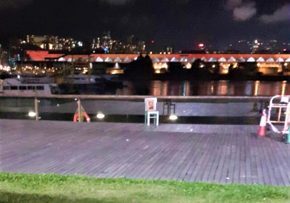 有幾個人帶了張凳放在海旁的步道上,凳上放了一張劉曉波先生的照片。他們就坐到我的附近,遠遠的看著人們的反應。