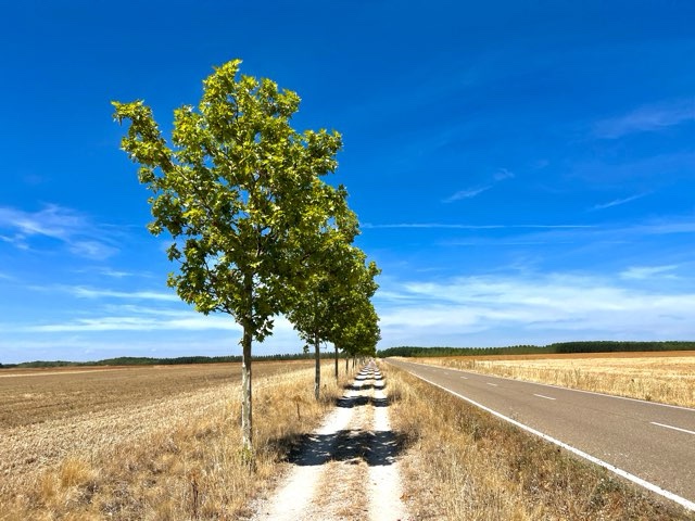 由Sahagun 走到Reliegos的30km走了十小時,烈日下走得筋疲力盡,已比官方推薦的多走了十餘公里,我再短訊問問Juno,她和義大利哥們已在6km外的下一個小鎮休息了。