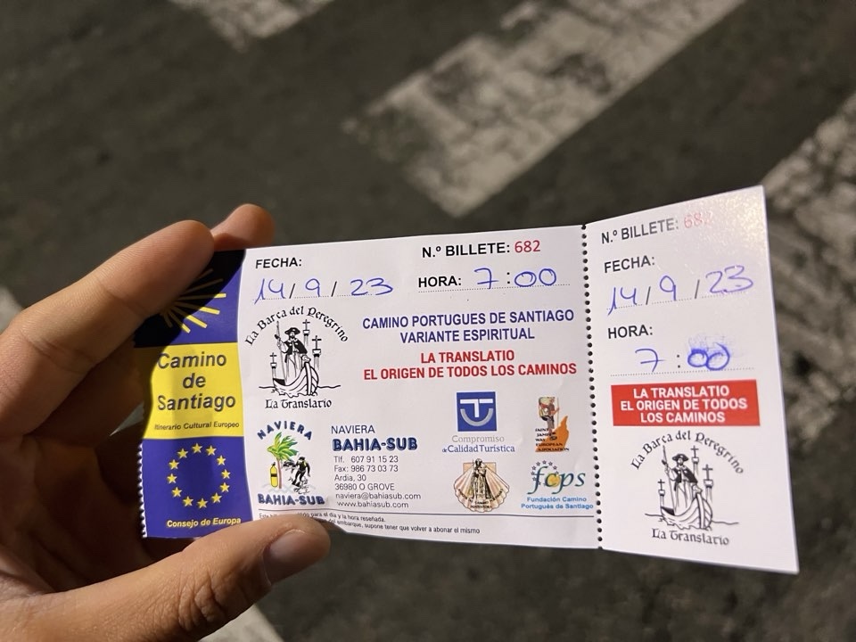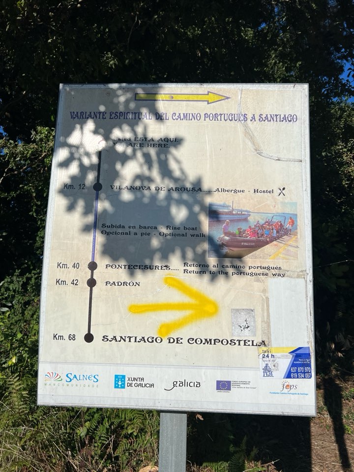大概走過了最難行的路,這段路大多是緩緩的下坡,走到海邊的Vilanova de Arousa ,Ría de Arousa 海灣的小鎮。走性靈之路的人都要在這裡休息一晚,因為這裡每日只有早上7時和8時兩班船沿Río Ulla 去到內陸的Pontecesures 登岸,其時又會回到葡萄牙之路,和沒走性靈之路的朝聖者會合,向北大約27 km,就是 Santiago,我那 270km 的葡萄牙海岸線便正式完結。