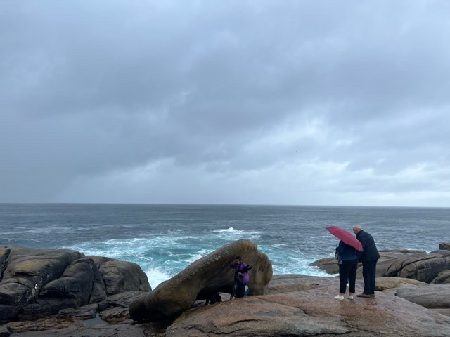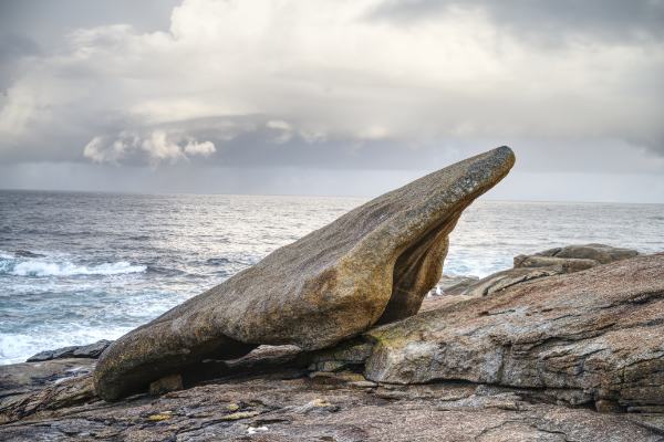 Muxía的海邊有座聖母教堂,教堂在17世紀興建,教堂旁邊的海岸據說都是手神秘的魔法石,聖雅各到這裡傳教時,聖母曾坐石船到這裡為他打氣助威,岸外的石頭就是當時石船的殘骸,都有神奇的治療功效,其中最有名的要數「腎石」,有說在石下鑽過九個圈,腎病(有說是身體的痛)就會痊癒,難怪西班牙的餸菜都很鹹,因為他們都不怕得腎病(誤)。我到海岸的時候橫風橫雨,有個老伯冒着風雨努力的爬腎石,希望他的腎不是有什麼事急需治療就好了,身體有事,還是看醫生比較實際。