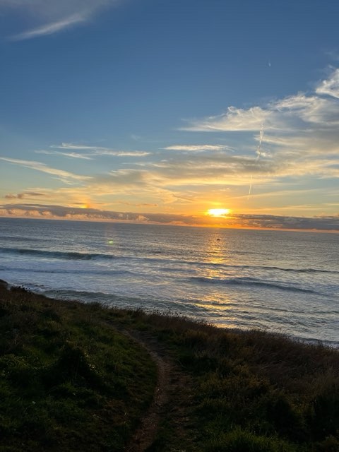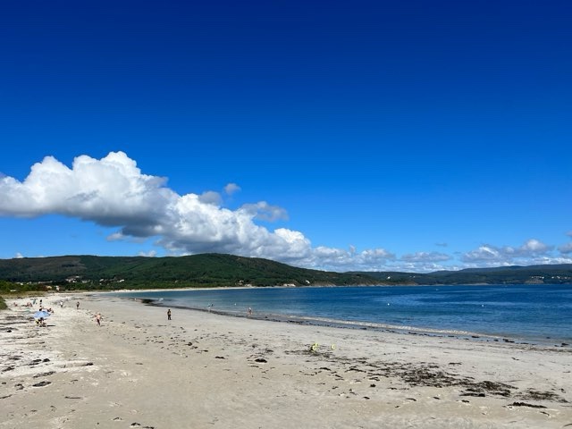 傍晚去到海邊散步的時候,遇到前幾日在路上遇到的一位朝聖者 Laia,在路上有時都會見到她,跟她打打朝呼 。這天她剛去完潛水,她說這裡的魚域太少魚了,不是潛水的好地方,不過她也拾了兩個貝殼一個給她媽媽當手信。她正準備和另一個走英國之路的英國阿伯Paul在庇護所煮Pasta,邀請我一齊去食,食飽後大約八點鐘,Laia 提議不如一起到附近的海灘看日落。