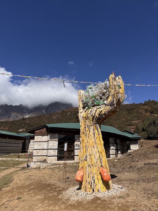 其中一個我覺得頗有趣的項目是:他們會在山上收集塑膠垃圾,處理後分裝成約 1 公斤的小袋,讓登山客在回程往 Lukla 時順手帶走。這種「人人參與」的方式,既是環保教育,也讓人反思登山與環境的關係。不過我心裡想,比起揹袋下山,從源頭減少即棄物,或許才是更有效的方法。
