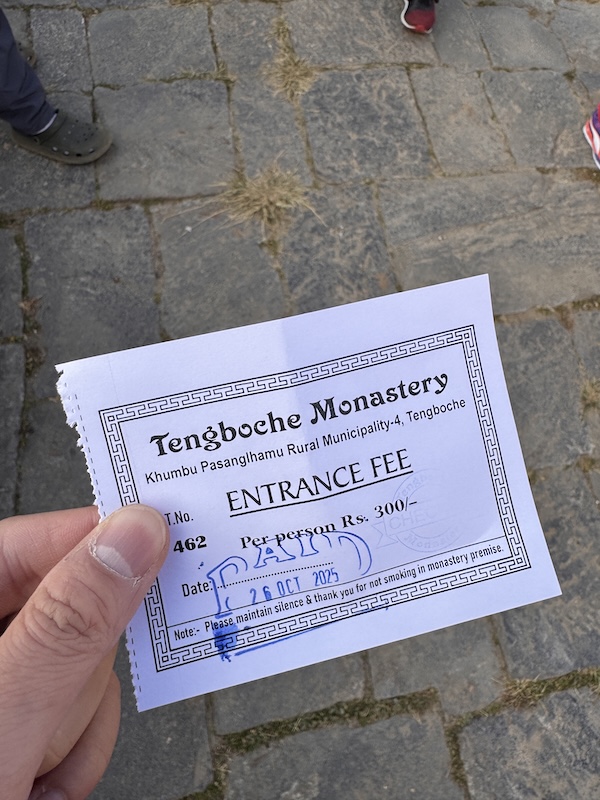 Namche Bazaar 的下一站是Tengboche,Tengboche 最有名的,是Tengboche 的寺院,寺院入場費是300 Rupee,,抵達時寺內僧人正低聲誦經,四周坐滿了遊客。忽然一位僧侶手持吊爐,焚起香火,煙霧繚繞,這陣氣味十分熟悉,令我想起兩年前走的朝聖之路。