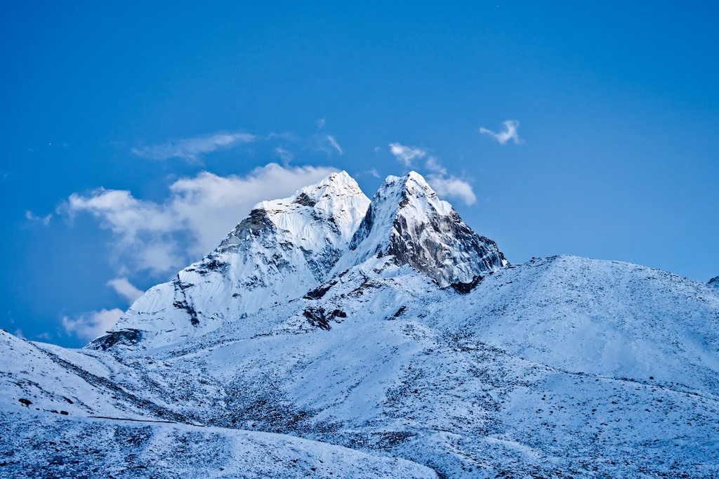 傍晚離開 Cafe 準備回酒店吃晚餐時,雪似乎剛剛停下。之前大雪紛飛,四周景色全被遮掩;這一刻,才真正看清 Dingboche 的風貌。白雪覆蓋的山谷靜謐壯麗,我心裡暗暗祈願:希望明天也能繼續好天氣。
