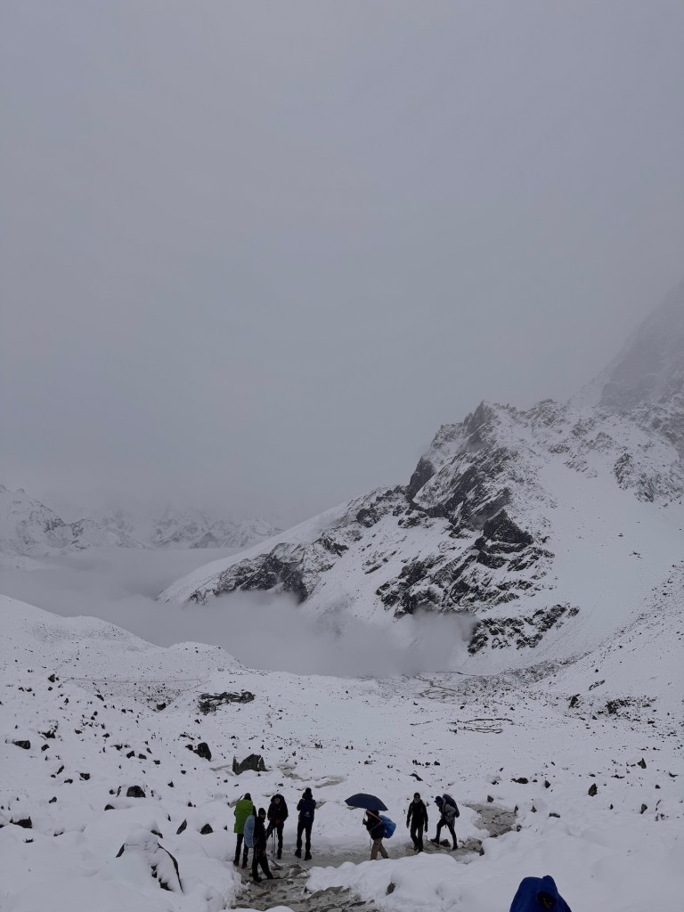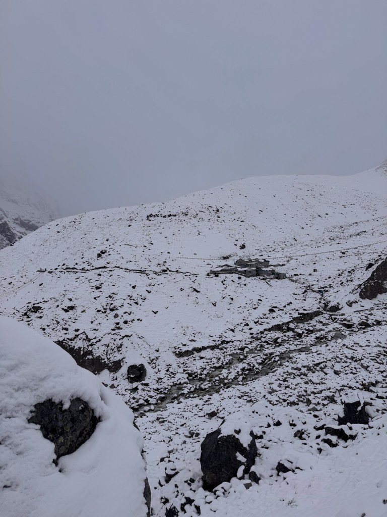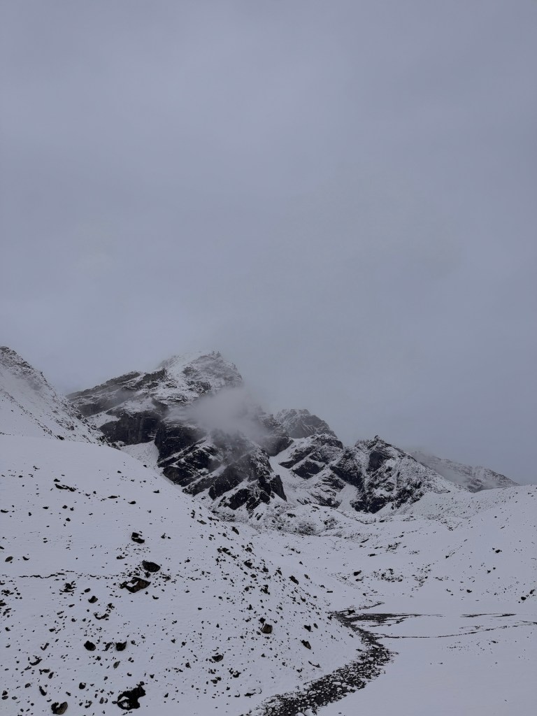 留了在Dingboche 兩日,出發去Lobuche,天還是下著雪,離開Dingboche,我們又要行去那個山丘,在那個小佛塔前,不再向上,轉而走向一望無際的白色。