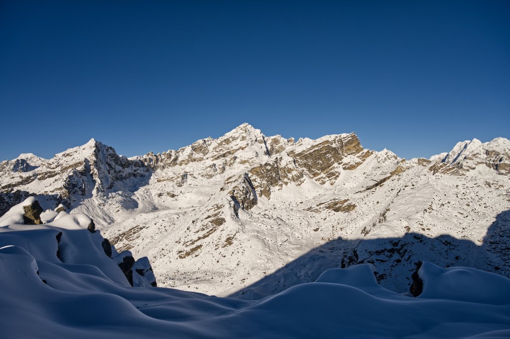 天色漸亮,四周的山巒逐漸顯現,上山的路也漸漸變得清晰。原來,望著那座似乎永遠無法靠近的山嶺,才是真正的崩潰。從四點半出發,最終還是趕不及日出,只能在半山腰看著光線慢慢照亮遠處的雪峰。